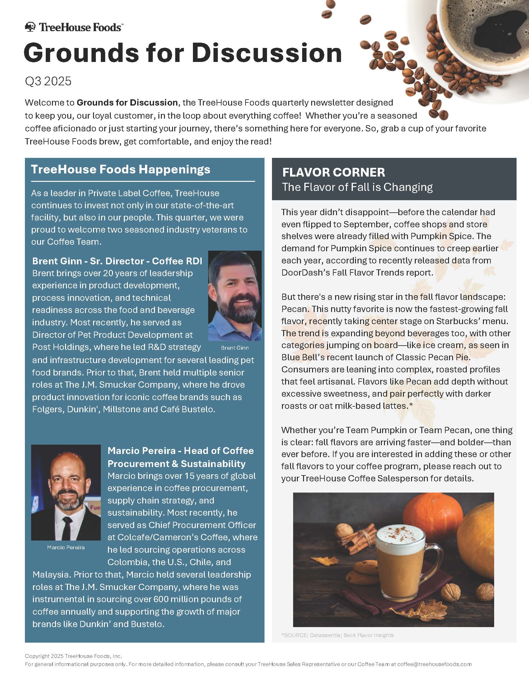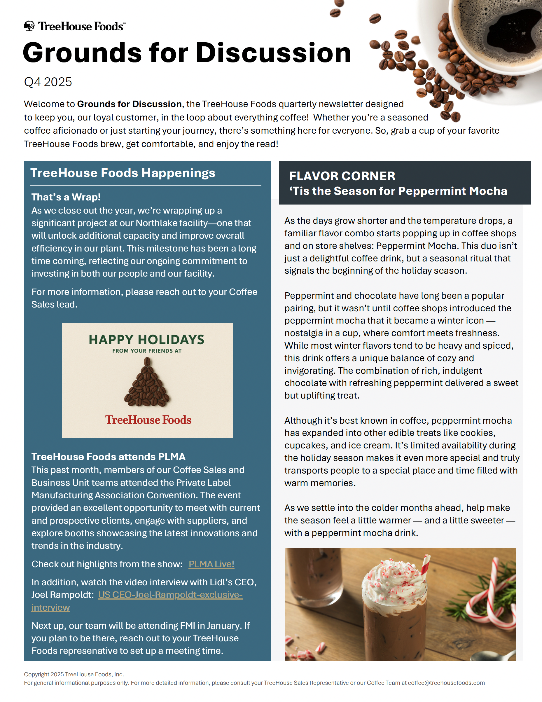 Check out our quarterly newsletter to see what's brewing at TreeHouse Foods!